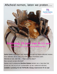 In de bijeenkomst van 25 juni praten we over afscheid nemen. Geven we voorlichting over mogelijkheden, over loslaten en vasthouden.