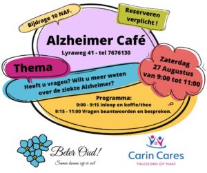 De vakantie is voorbij en we zijn er daarom weer met een Alzheimer Cafe.